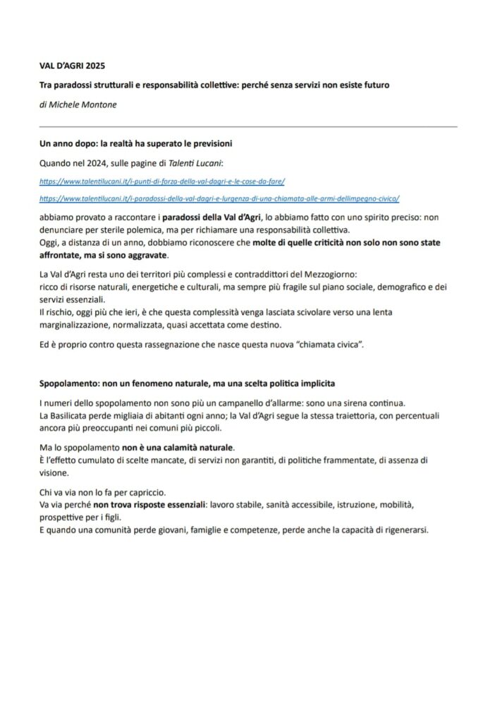 C'è un capitolo importante in quella storia che il professor Tucciariello ci invita a recuperare per una nuova sovranità progettuale…