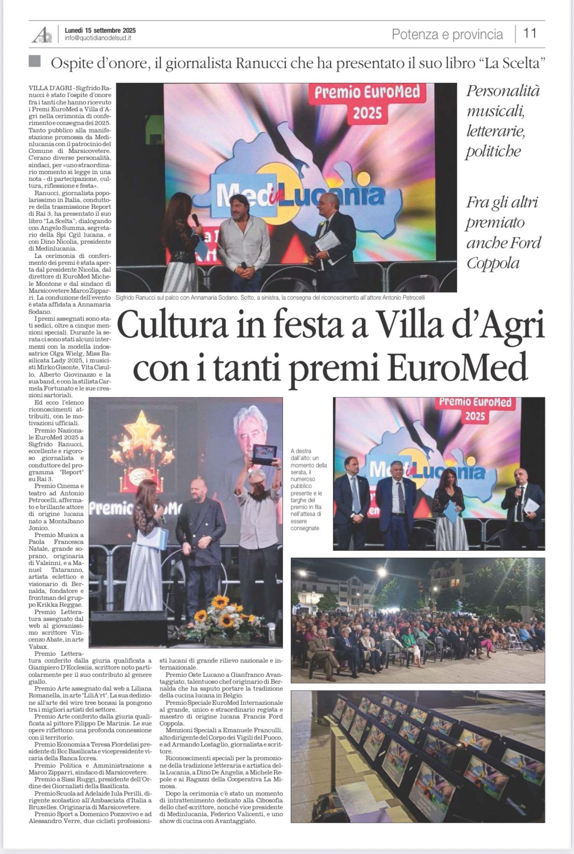La splendida pagina dedicata da Il Quotidiano del Sud al Premio EuroMed